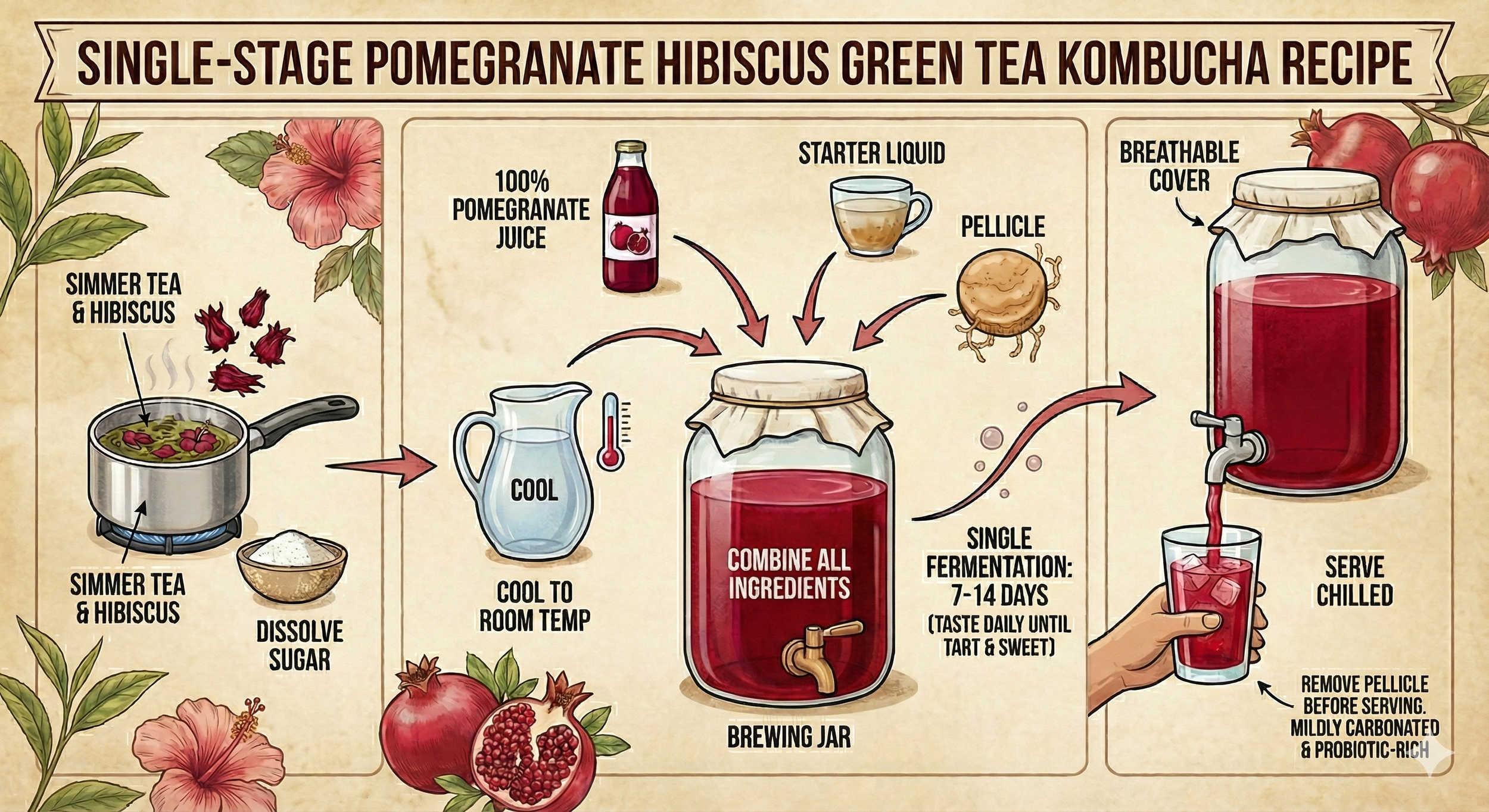 Single-Stage Pomegranate Hibiscus Green Tea Kombucha